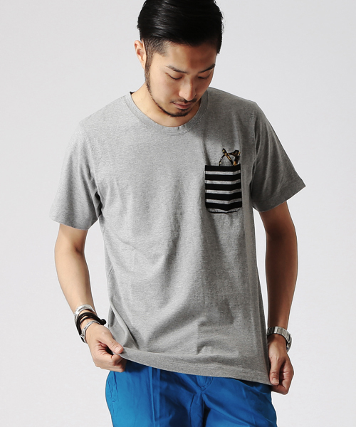 シンプルなボディにボーダー柄の胸ポケットが映えるショートスリーブTEE。合わせ易いベーシックなカラーバリエーションで、1枚で着てもシャツやジャケットのインナーとしても程よく主張するアイテムです。 model:H178 B87 W71 H90 着用サイズ:LARGE 店舗へお問い合わせの際は下記品番をお伝えください。品番:11-04-0188-592
