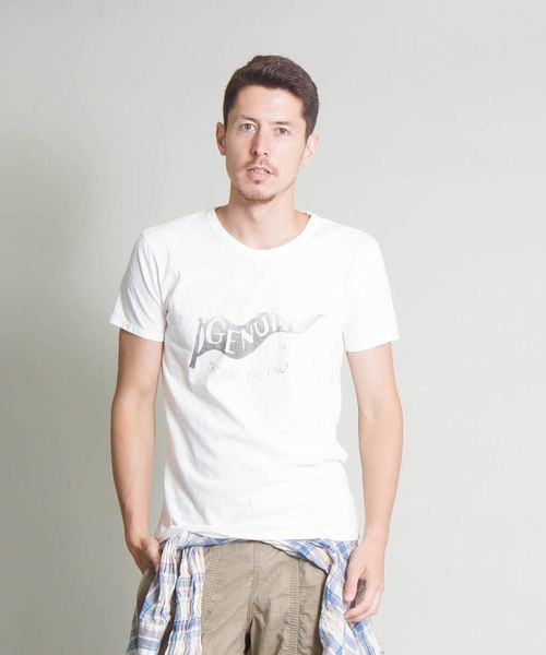 'Genuine'がプリントされたFlagプリントがフロントの存在感を演出しているカットソーです。 生地は生産時に除去される落綿をあえてミックスすることで絶妙なムラ感を出した綿100%をチョイス。 版ならではの擦れたプリントと杢調のミックスカラーの相性も抜群です。 襟ぐりはワークteeらしくフライス使いに仕上げています。 ベーシックなデザインなので使い勝手が良いのも魅力の1つです。 model:H175 B87 W69 H86 着用サイズ:FREE