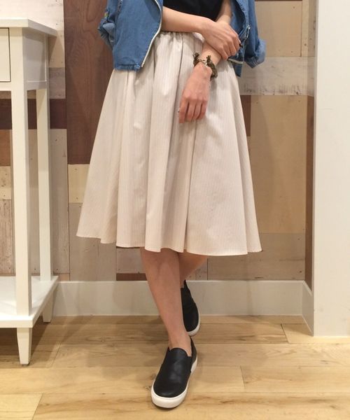 ストライプフレアスカート☆ 夏らしい爽やかなストライプのスカート。 程よいボリューム感が可愛いフレアシルエットとひざ下丈でトレンド感たっぷりに仕上げました!Tシャツをインしたカジュアルな着こなしでお楽しみいただきたい夏にオススメの一着です。 model:H160 B82 W62 H87 着用サイズ:フリー ●着用スタッフ:171㎝ 着用サイズ:フリー ※スタッフ着用画像は色味が若干異なります。カラーは詳細画像をご確認ください。 ※着用、お取り扱いの際は商品についておりますアテンションタグ、洗濯ネームを必ずご確認ください。 店舗にお問い合わせの際は、全国のAnother Edition店舗まで 下記の品名/品番をお申し付け下さい。 品名:AE STRIPE FLR SK 品番:56242991194