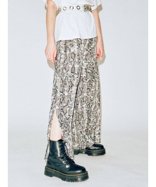 ルーズなシルエットのパンツにプリーツがかかっているからカジュアルになりすぎず女性らしさも出せるパンツ。グランジ感のあるトップスとあわせ、はずしたスタイリングも◎
