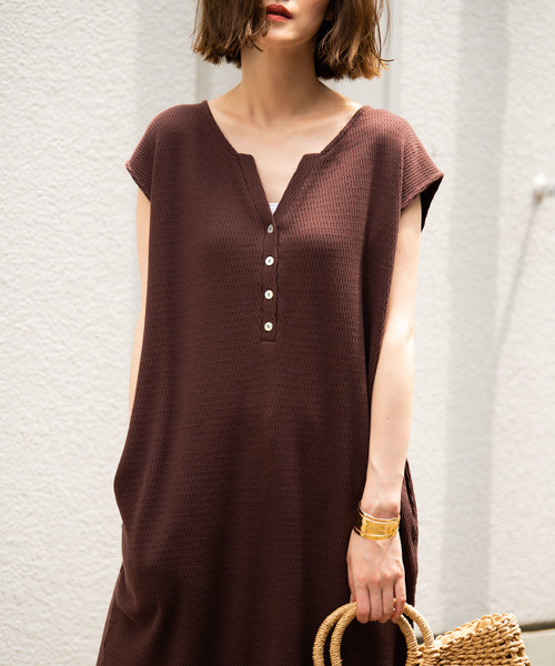 【AUNT MARIE'S ヘンリーネックハニカムワッフルノースリワンピース 】 大人気ハニカムワッフルワンピースの新作登場!! 夏まで大活躍間違いなしのオシャレ見え優秀ワンピ 《styling》 2019SS新作のカットソーワンピース。 ハニカムワッフルの凹凸が体のラインに程良くフィットし、 カジュアルになりすぎない女性らしいスタイリングを演出してくれます。 スッキリしたボタン付きのヘンリーネックになっており 前後逆に着てバックシャンを強調したスタイリングも◎ パンツやスカートを合わせたレイヤードコーデもオススメです。 《detail》 ロング丈のカットソーワンピース。 両サイドにポケットが付いています。 裾がラウンドカットになっているのでロング丈でもスッキリ見えます。 前後逆でも着られる2wayデザイン。 《fabric》 細かい凹凸でカジュアルさをほどよくおさえられるハニカムワッフル。 薄すぎずほどよい厚みがあるので着心地もバツグンです。 ※詳しいお手入れ方法は商品タグをご参照ください。 【商品のお気に入り登録】 完売カラーの再入荷通知やラスト1点の通知 プライスダウンの通知も受け取ることができます。 ぜひご登録ください◎ 【ブランドのお気に入り登録】 新商品や再入荷など、 ブランドの情報をいち早くお知らせします! ぜひご登録ください◎