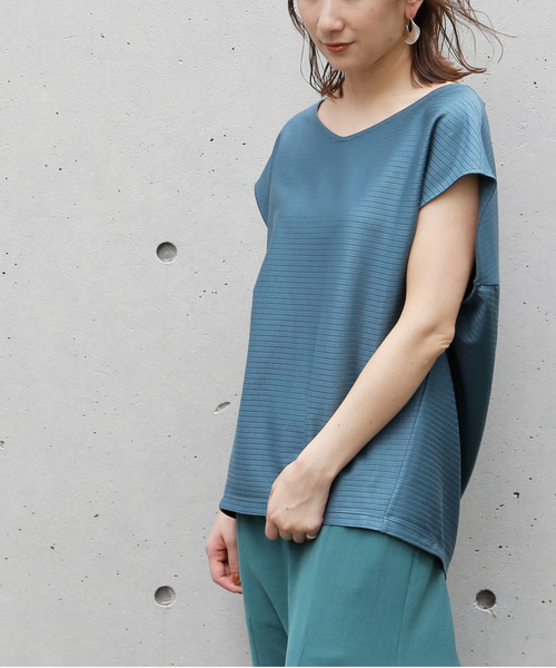 高品質なコットンと細いヴィスコース素材をブレンドした、すこし光沢感のあるシックなカットソー。 すこしオーバーサイズシルエットですが、この畝ときれいな素材感で、すっきりとシャープに見せてくれます。