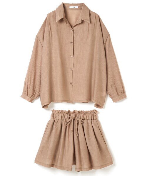 シャツとショートパンツのお得なセットアップが登場。 ボタンを外してルーズに羽織れば大人っぽさと抜け感を印象付ける。 ショートパンツは、裾に広がりを持たせて足をすっきりと長く見せてくれる。 ウエストにフリルをあしらいキュートなアクセントに。 セットではもちろん、シングルユースでも活躍間違いなしのお得アイテム。 ★トップスは透ける素材の為、インにはキャミソールなどを着用ください。 ★トップスとボトムの2点セットです。 ★ボトムはウエストゴム入りです。 ★ボトムは裏地付きです。