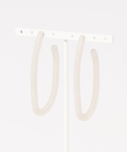 様々なスタイリングのアクセントにピッタリなアクリルピアス。軽やかながらもシックな印象のマーブル模様が耳元を大人っぽく飾ります。ロングにもショートヘアにも映えるボリューム感もポイント。同素材はもちろん、メタリックまで、幅広いアクセサリーとのコーディネートも楽しめそうです。