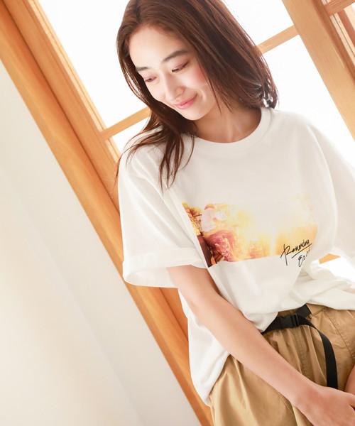 フォトプリントが目を惹くメッセージが入ったTシャツ。爽やかなカラーのフォトプリントが着回しやすい。 カラーによってメッセージがプリントされている場所が違うのもポイント。 ワイドすぎないシルエットなので、ボトムスにボリュームをもってきてもバランスのとりやすいアイテム。