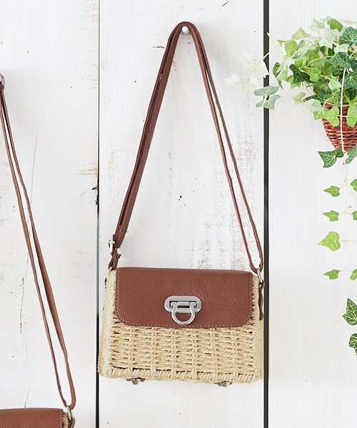 春夏らしいフラップかごバッグの登場。かっちりとしたスクエア型のフォルムとショルダーデザインがカジュアルながらシックな印象に。フェイクレザーのフラップが大人っぽく上品さを引き立てます。【素材・サイズ感】柔らかい合皮素材なので、ポシェットとして肩掛けしても痛くなりにくいのも嬉しいポイント。コンパクトながら必要なものはしっかり入るサイズ感。 【スタイリング】いつものコーデにプラスするだけでシーズンムードUP◎。普段使いからちょっとしたお出掛け、リゾートシーンまで幅広いコーデにマッチします。 内側ポケット:1