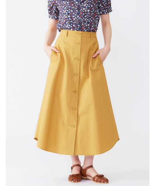 人気のフロントボタンのスカートを、豊富なカラーバリエーションで仕立てました。前はスッキリ見え、ウエスト後ろはゴム仕様で履きやすさも重視しています。長めの着丈ですが、ラウンドテールで足元を軽やかに見せてくれます。アイボリーに近いピンクベージュと、イエロー、ミントグリーン、ネイビーの4色です。両サイドポケット付き。 POU DOU DOU プードゥドゥ ひと手間加えた存在感のある「日常着」 いつまでもときめきとかわいいを忘れない方への 愛着を持てるワードローブ