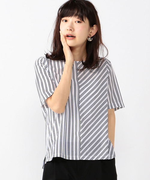 清涼感漂うホワイト基調のストライプ フロントの切り替えデザインでスタイリッシュに遊び心をプラスしたストライププルオーバーです。 ベーシックなラウンドネックは1枚ではもちろん インナー使いにも最適。 デイリーからオンスタイルまで幅広いシーンに活躍します。 モデル身長:168cm Mサイズ着用 商品詳細のところにある【ハートマーク】をクリックして、 お気に入り登録をしてくださいね! 嬉しいお知らせが届くようになりますよ!