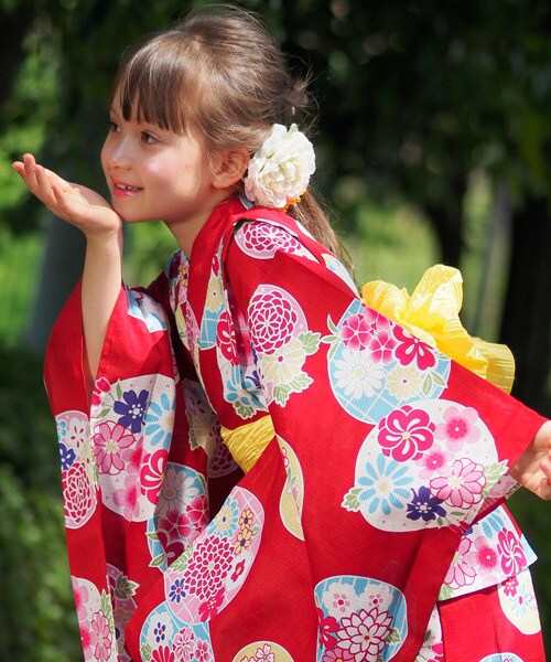 FLAG by ALEXIA STAM(フラッグバイアリシアスタン)の「浴衣(浴衣・キッズ・レッド・100~130cm)」の1枚目の写真