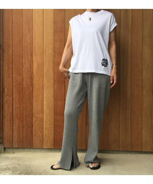 今季人気のサーマル素材のイージーパンツ! 肌触りの良いワッフル素材は綿100%で穿き心地が良く手離せない一本になること間違いなしです。 やや股上が深く、ワイドめのシルエットでリラックス感溢れる着こなしが楽しめます。 深めに入ったスリットから足首がちらっと見えるのもポイント。 Tシャツとの相性が良いので、リゾートやワンマイルのお出かけなどのロケーションにぴったりのパンツです。