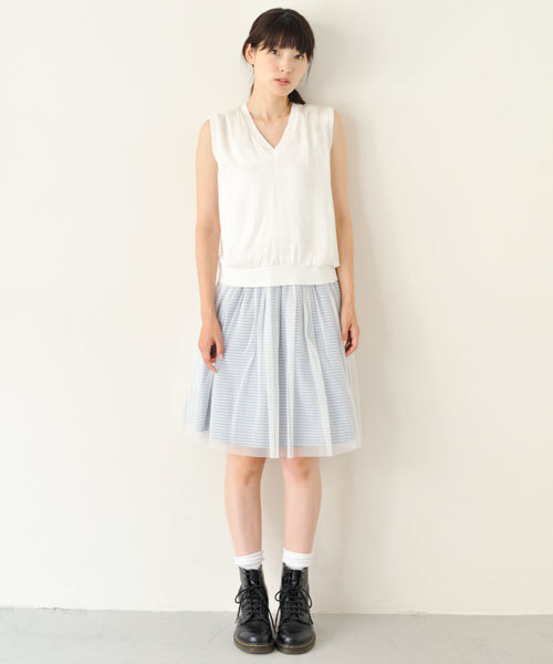 ◆グリーンレーベル別注のWEB限定『mielle(ミエル)』新作◆モデル森貴美子さんがデザインする人気ブランド『mielle(ミエル)』から、夏の新作が登場です。今季らしいボリュームのあるシルエットが可愛らしい膝丈スカート。チュールから覗く、さりげないボーダー柄が爽やかな雰囲気を演出します。またたっぷりと施したギャザーが素敵なアクセントに♪これからのシーズンに大活躍すること間違いなしの一枚です。※こちらの合わせの商品(シューズ)は、モデル私物になります。model:森貴美子 H168cmmodel:H165 B77 W60 H84 着用サイズ:FREE ~グリーンレーベル リラクシング各店へのセール品の在庫のお問い合わせに関して~セール品の在庫の有無に関して店舗ではお答えできかねる場合がございます。また、セール期間中の店舗でのセール品のお取り置きはお受けいたしておりません。予めご了承下さい。品番:3624-599-0481※画像の商品はサンプルです。 実際の商品と仕様、加工、サイズ、色味が若干異なる場合がございます。