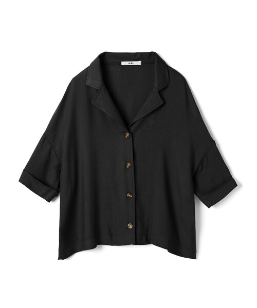 オープンカラーデザインが、クラシカルな印象のシャツ。 半端な袖丈が腕まわりを華奢に見せ、全体も好バランスに。 ボディーを締め付けないゆったりシルエットで、気になるスタイルのカバー効果も期待出来る。 1枚ではもちろん、軽めのアウターとしても大活躍間違いなしのアイテム。