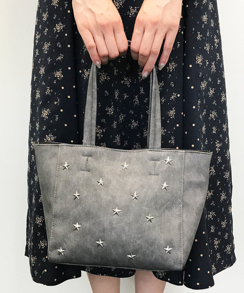 スタースタッズがキュートに目を引く2WAYバッグ キラリと光るスターモチーフのスタッズを散りばめてポップなアクセントを加えたトートバッグです。 たっぷりと設けたマチやイン&アウトにあしらった ポケットで収納力をアップ。 ショルダースタイルも楽しめる2WAY仕様です。 商品詳細のところにある【ハートマーク】をクリックして、 お気に入り登録をしてくださいね! 嬉しいお知らせが届くようになりますよ!