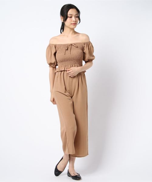 シャーリングオフショルブラウス&クロプトパンツセットアップタウンやリゾート、パーティーでも着こなせる一枚。トップスとパンツを別々でも着用できるので着こなしの幅が拡がります旅行にもマス◎【minius(ミニウス)】様々なLIFE STYLEの女性へ、ちょっとリッチで、ちょっとリーズナブルなonSTYLE、offSTYLEをお届します。