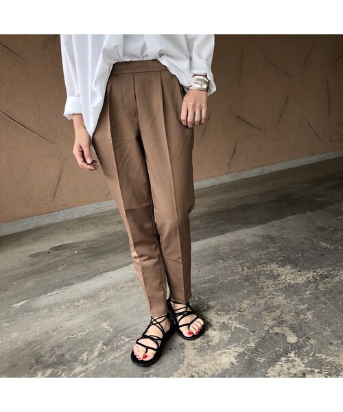 きれいめからカジュアルまで幅広く使えるパンツです。 センターラインを強調しすっきりとしたシンプルデザイン。 バックゴムで履きやすいのも嬉しいポイントです☆ スニーカーやサンダルで着崩すのがCOPINEスタイルです♪ ※モデル身長:161㎝ ◆クリックポストにて代引きをお選び頂いた方は、390円プラスさせていただき、宅配便代引きにて発送させていただきますのでご了承下さい。 ◆カラー モカブラウン・カーキ・ブラック ◆サイズ 【S】 着丈:87cm ウエスト(ゴム):31cm ヒップ:45cm 前股上:23cm 股下:65cm わたり:26cm 裾幅:14cm 【M】 着丈:89cm ウエスト(ゴム):33cm ヒップ:47cm 前股上:25cm 股下:65cm わたり:27cm 裾幅:15cm ※多少の誤差は予めご了承ください。 ◆サイズ ポリエステル80% レーヨン17% ポリウレタン3%