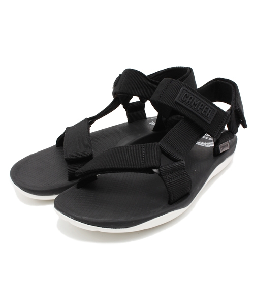 行動的な夏にぴったりの機能性サンダルです。ラバー素材のソールはしっかりとしたグリップ力と軽量を、中敷部分には非常に柔らかい素材でクッション性の高さを感じさせるお作りです。 水辺でもお使いいただけるようにアッパー素材には水に濡れても大丈夫な素材を用い、速乾性があり快適な機能を持たせています。ストラップはベルクロ仕様となっており、調節可能なため足にフィットさせることができ、安定感のあるしっかりとした履き心地でカンペールらしさも感じるサンダルです。 モノトーンのベーシックカラーでまとめ、合わせやすさと使いやすさがカジュアルに仕上がっています。