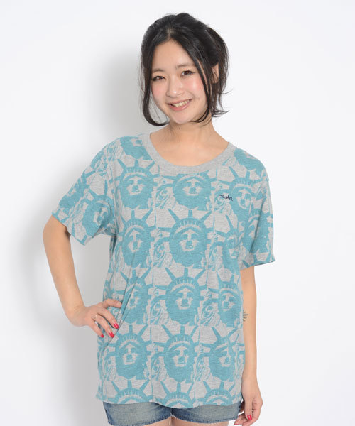 自由の女神がタイル状に並んだ、インパクトのあるオリジナル総柄!胸にはマイクミルズロゴ刺繍入り★