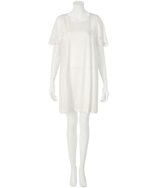 薄手のコットン・ポリエステル素材を使用した半袖ワンピース。袖にカットワークで表現されたキツネがポイント。Torso:H163.5 B80 W58.5 H86 着用サイズ:02サイズ