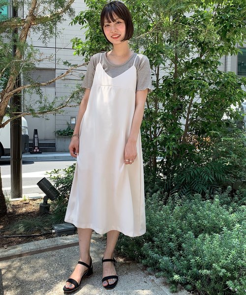 繊細な光沢感が上品な印象のワンピース。 レイヤードが楽しめる、人気のdot hangout onepieceと同じデザインでお作りしました。 パールのような明るめのアイボリーと赤みのある深めのブラウンの2色展開。カジュアルなアイテムと合わせてもラフな印象になりすぎない質感とカラーです◎ シーズンレスで着ていただける素材なので、今の時期から長くお楽しみいただけます! これからの季節はリネン素材のブラウスやTsなどと合わせて、質感の違いが楽しめるスタイリングがおすすめです。