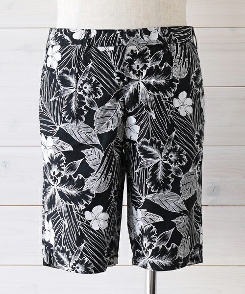 テーマ『ブラック・アロハ』を象徴する、オリジナルアロハプリントのショーツ。 共生地のジャケット(14S-NSA-JK-10)とセットアップで着用できます。