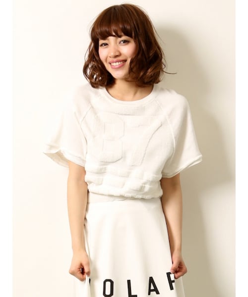 【お届け予定日:2014年5月下旬】肌触り抜群のパイル素材のニットトップス。ナンバーロゴ入りですが、同色なのでキャッチーになり過ぎず、あわせやすい一着。ホワイト/model:H161・B83・W56・H84ネイビー/model:H165・B85・W60・H87中国製こちらの商品はご予約商品となりますのでご注意下さい。お届けは商品が入荷次第となります。目安としましては、5月下旬となりますので、予めご了承願います。カラー・サイズによっては、入荷に多少のズレが生じる場合がある為、お届けにも多少ズレが生じる場合がございます。商品の入荷の関係上、他の商品とご一緒のご注文の場合、他の商品も予約商品と同梱してのお届けとなりますのでご注意ください。