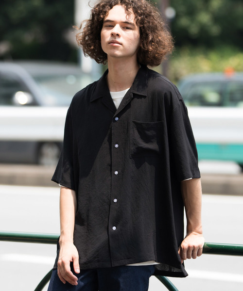 シンプルながらも一枚で決まるオープンカラーシャツさらっとした肌触りのポリエステルを使用したオープンカラーシャツ。 薄手で表情のある素材感が、シンプルながらも存在感のある一枚に。 シーズンを感じさせるカラーリングも魅力の一つ。 一枚着、羽織、アウターのインナーと様々なスタリングに対応できる仕上がり。 3,900円+TAXというTRYしやすい価格もポイント。