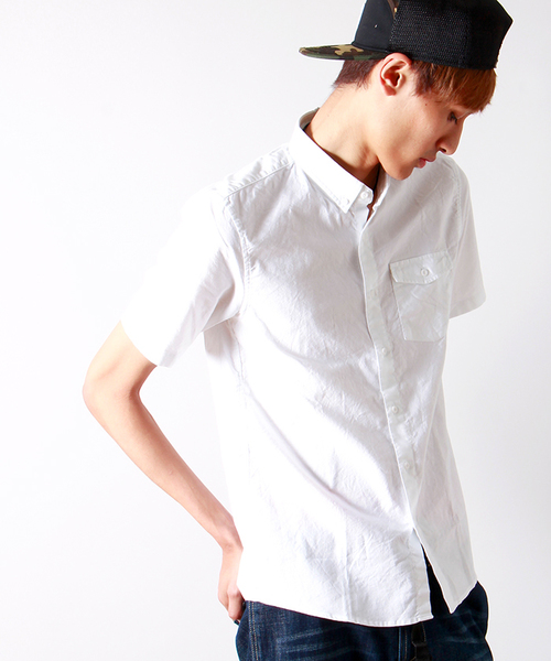 ガーメントダイを施す事で、生地にムラ感を出しヴィンテージライクな風合いに仕上げたシャツ。ザラついたような生地の表情と、それでいて柔らかな肌触りがこなれた雰囲気を着こなしに演出します。着まわし万能なシンプルなデザインで、一枚あると非常に重宝頂けるのが特徴。シーズン問わずお使い頂ける定番商品。お値段も魅力的なコストパフォーマンスに優れたオススメのひと品です。 店舗にてお問い合わせの際は、下記の品名・品番をお申し付け下さい。 品名:ガーメントダイオックスシャツ(S) 品番:B14SM-1101-022 model:H194 着用サイズ:LARGE 詳細画像 ホワイト model:H186 B90 W74 H90 着用サイズ:LARGE ネイビー model:H178 B85 W74 H89 着用サイズ:LARGE イエロー・ピンク model:H180 B83 W68 H88 着用サイズ:LARGE