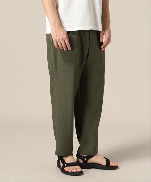 【2019SS】 JOINT WORKS ポリエステルサッカーストライプの無地を使用した2タックパンツ。 腰まわりは2タックのゆったりとしたシルエットでテーパード型に仕上げてします。 適度なとろみと張り感がリゾートスタイルを演出してくれます。 洗濯機洗い可能なイージーケアも嬉しいポイントです。 ※取り扱いについては、商品についている品質表示でご確認ください。