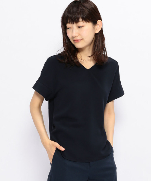 シンプルコーデがきれいに決まる優秀ブラウス スマートな着こなしをサポートするVネックのブラウスです。 ほど良いゆる感のあるシルエットで、 裾を下ろしてもタックインしてもきれいに着こなせます。 前後差のある裾も、 今らしさを後押しするポイントです。 ●生地について[伸縮性]なし [透け感]淡色にあり [裏地]なし 商品詳細のところにある【ハートマーク】をクリックして、 お気に入り登録をしてくださいね! 嬉しいお知らせが届くようになりますよ!