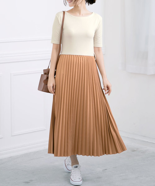 1枚で着るだけでサマになるウエストリボン半袖ドッキングワンピースが登場!切替とウエストリボンのスタイルアップ効果も魅力のひとつ。5分袖が気になる二の腕をカバーしてくれます。【素材・サイズ感】シンプルなカットソートップスとロング丈プリーツ/レーススカートのドッキング。締め付けがないのでストレスフリーな着心地。スリムなシルエットのトップスに体のラインが響きにくいスカートのメリハリが◎大人っぽい上品ワンピはきれいめアイテムと相性◎