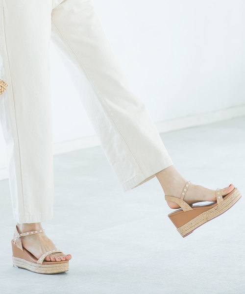 ジュートソールとパールベルトがポイントの一足。ボリューミーなプラットフォームシューズは、コーディネートの主役級アイテム。【素材・サイズ感】S~LLの4サイズ展開。ブラックとモカはスエード調素材を使用。ベージュはトレンドのリネン素材でご用意しました。ふかふかクッションのインソールで足に優しい履き心地です。