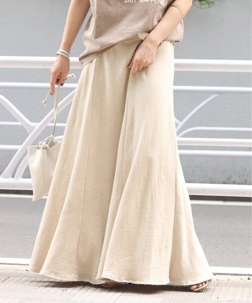 ●お届け予定:7月上旬 ●限定数量に達し次第、締め切りとなります。【2019AW】Plage 分量感のある軽やかで贅沢なマキシ丈スカート。ウエストとヒップまではすっきりと、裾にかけてフレアを入れマーメイドシルエットに仕上げました。裾はカットオフ仕様にこだわり、二重に生地を重ね裁断することでカジュアル過ぎないカットオフが実現。これからのシーズン、涼やかに過ごしていただけるスカートでありながら、上品な女性らしさを演出するシルエットと丈バランスも魅力。動くたびに揺れるシルエットが大人らしい印象を与えてくれます。素材は表情豊かなリネンコットンのやや薄手の裏毛素材を使用し、通常の裏毛とは違いリネンを加えることでシャリ感がありドライタッチで滑らかな質感が特徴です。ご自宅にて洗濯も可能ですので汗をかきやすい季節にも安心して着用いただけるイージーケアも嬉しいポイント。同素材のトップスと組み合わせたセットアップでのご使用もおすすめです。※シリーズのご案内 トップス(品番19070922200030) **********************透け感:なし裏地:なし伸縮性:ややあり光沢感:なし生地の厚さ:普通**********************《スタッフmidori》 年齢/身長:152cm/体型:細身/普段サイズ:S/着用サイズ:36サイズ感: ややズルッとする丈感。素材感:薄手ですが透け感もなく安心して着ていただけます。着心地: ゆったりしていてリラックスした着心地。**********************※取り扱いについては、商品についている品質表示でご確認ください。 ※照明の関係により、実際よりも色味が違って見える場合があります。 またパソコン・スマートフォンなどの環境により、若干製品と画像のカラーが異なる場合もございます。予めご了承ください。着用スタッフ:152cm 着用サイズ:36【注意事項】 ・画像の商品はサンプルです。 実際の商品と仕様、加工が若干異なる場合があります。 ・サイズ表記はあくまで目安となります。 ・その他の予約商品、通常商品との同時決済はできません。 ・入荷状況により、お届け予定が前後する場合があります。 ・お客様への発送が店頭販売より遅れる場合もあります。 ・追加生産商品は、一部の店舗、通販で販売中の場合がございます。 予めご了承下さい。モデルサイズ:H161 着用サイズ:38