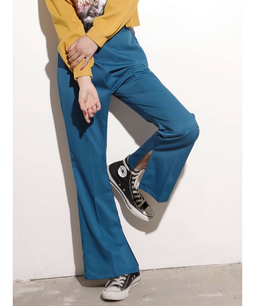 さりげないスリットがポイントのパンツ。フレアシルエットが美脚効果抜群でヒールを合わせればスラリとしたルックスに◎シンプルなのでTシャツでもブラウスでも合わせやすく、デイリーユースに活躍すること間違いなしのアイテムです。
