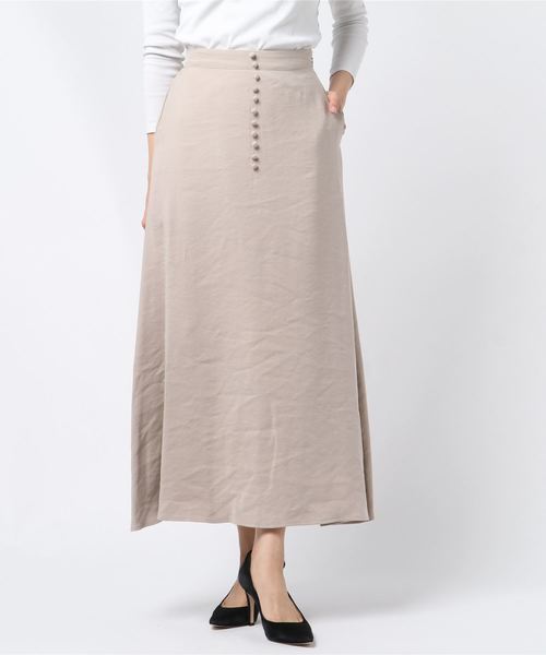 スカートのフロントに小さいクルミボタンをあしらったスカートです。 それぞれの配色も、少しくすんだ色を使用しているため、長い期間使っていただけると思います。 ウエストは後ろがゴム使用になっており、履き心地もよく、シルエットもきれいなまま保てます! スリットもしっかり入っているので足元も楽にはいていただけます。 ニットやTシャツにあわせて、ラフに着ていただくのがオススメです。 【TRUDEA(トルディア)】by Astoria(アストリア) 毎日着るものだからこそ素材や着心地にこだわりを! 洗練されたデザインに程よいトレンド感をMIXした働く女性のワードロープを提案します。 ベーシックなデザインなので、通勤やオフィスでのお仕事スタイルに◎ ビジネスなどのオンスタイルや、コーディネートするアイテム次第で、きちんと感を出しながら、カジュアルダウンしたスタイルやオフスタイルにも◎