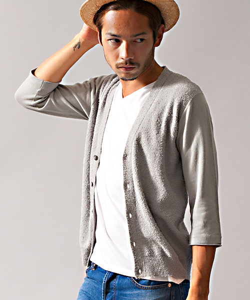 身頃と袖を異素材で作成したこちらのカーディガン。身頃にはドライタッチでパイルのような表情のハイツイストブークレ糸を採用。袖にはハイツイストコットンを使用し、クォータースリーブで作成した今シーズンお勧めのアイテムです! model:H178 B89 W72 H94 着用サイズ:L 店舗にてお問い合わせの際は、全国のBEAUTY&YOUTH 各店舗まで下記の品番をお申し付け下さい。品名:BTR COMBI V CGN 品番:1228-106-0410