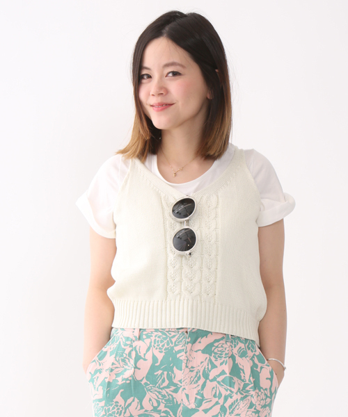 mystic ニットベストとTシャツがセットになったお得なアイテムです。もちろん別々にも着て頂けるのでコーディネイトの幅が広がります。 ジャストサイズな所も可愛いポイントです!今シーズントレンドのフレアスカートにも、テーパードパンツに合わせるのもお勧め! ※画像の商品はサンプルです。 実際の商品と仕様、加工、サイズが若干異なる場合がございます。