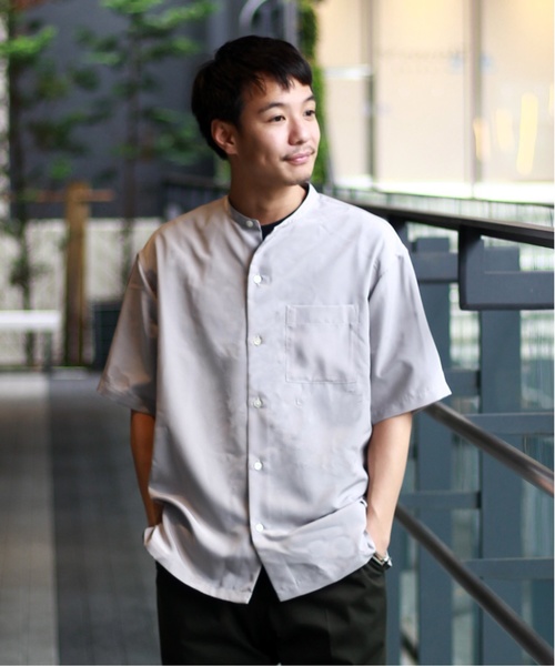 滑らかな肌触りが特徴の417オリジナルのバンドカラーシャツ。 ポリエステル糸を使用したファブリックなので、品のある光沢にドレープ感が洒脱な雰囲気を演出してくれす。 上品な表情ながら大きめなポケットを配する事で、抜け感やトレンド性のあるデザインに仕上がっています。 今期注目のシーズナルカラーでの展開になりますので、羽織るだけでスタイリングが決まる一枚です。 スラックスは勿論の事、ショーツ合わせのカジュアルスタイルもスタイリッシュな着こなしになります。