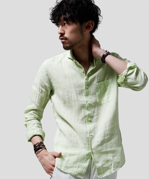 ◆nano・universe◆(ナノ・ユニバース)『着るほど馴染むフレンチリネンのシャツ』通常リネンはシャリ感のあるイメージがある中、フレンチリネンはとろみのある柔らかさが魅力です。着れば着るほど馴染んでいき、愛着の湧く素材感を楽しめます。素材感を生かしたきれいなペールトーンが、春夏らしい清涼感のある着こなしに。nano・universe model:H178 B80 W70 H90 着用サイズ:MEDIUM