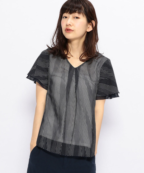 ふんわり華やかながらラクチンな着心地 女性らしくエアリーなシフォンブラウスです。 細やかなドット柄が、 大人可愛い華やぎをふんわりと漂わせます。 身頃の内側はカットソー素材なので、 Tシャツ感覚で気負わず楽に着こなせるのもポイントです。 通勤アイテムとしても人気のシフォン使いブラウス。 清涼感のあるドット柄が印象的。 スカート合わせにもおすすめ。 モデル身長:168cm 9号着用 ※353341-206 【WASHABLEシリーズ】ウエストリボンワンピース 同生地・同柄にてワンピースも展開しております。 商品詳細のところにある【ハートマーク】をクリックして、 お気に入り登録をしてくださいね! 嬉しいお知らせが届くようになりますよ!