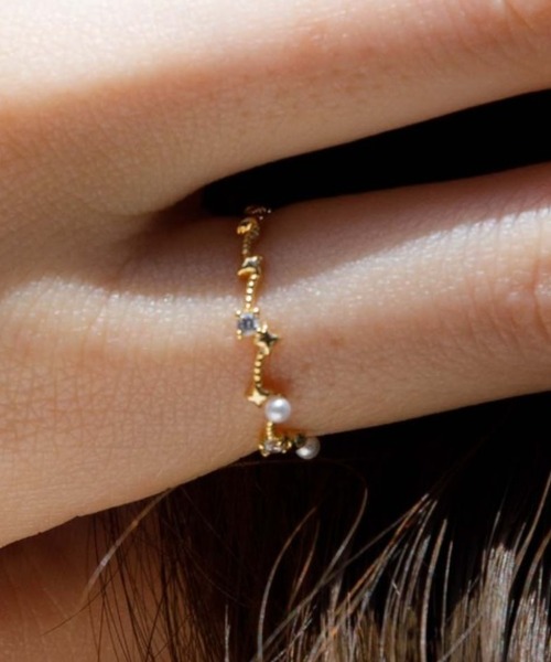 小さなパールやストーンを散りばめた、星座のようなロマンチックなデザインのゴールドリングです。 毎日使いたい小ぶりリング。 主張しすぎないさりげないサイズ感がポイントです。 指先に控えめな華やかさを。 細く華奢なフォルムなので、 お手持ちのリングと重ねづけでお使いいただけます。Size:約11号 【お買い物を上手にお楽しみいただくためのPOINT2つ】 ◎ 購入ボタン横の ♡ (ハートマーク)をクリック! 完売カラーの再入荷通知、残り1点の通知、セールの通知を受け取れます。 (クリックまたはタップで商品のお気に入り登録♪) ◎ ショップのトップページにある ♡ (ハートマーク)「お気に入りショップに追加」をクリック! 新商品や再入荷等、いち早くブランドのお得な情報を受け取れます。 (ブランドのお気に入り登録♪)