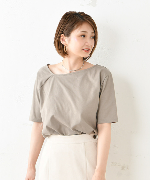 シンプルなゆるTの首元をアシメネックにした今年らしいデザインカットソー。 シンプルながら着るだけでコーディネートに抜け感が出て、今年らしい印象に決まります。 タイト過ぎないサイズ感が体のラインを拾わず、楽に着ていただけます。 ボトムも選ばないので、幅広いコーディネートを楽しんでいただけます。