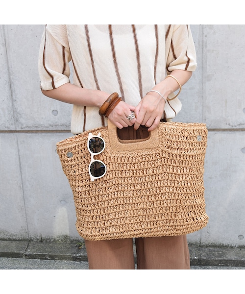 ◆アイテム詳細◆ 【 Marient S/S 2019 】 ナチュラルなペーパー素材を手編みした夏らしいBAG。 ハンドルがウッド素材で、形を変えることの出来るスナップボタンが特徴で、シーンに合わせて変えることが2WAYデザインです。 ーーーーーーーーーーーーーーーーーーーーーーー 【COLOR】ナチュラル 平置き(㎝) タテ 33 ヨコ 40 マチ 14 【素材】本体 ペパー ハンドル部分 ウッド 裏地 ポリエステル100%