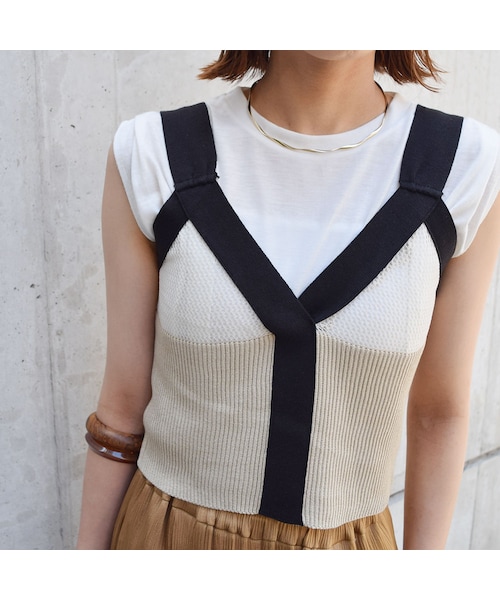 ◆アイテム詳細◆ メッシュレースとリブの対照的な編み地の組み合わせが特徴的なキャミニット。 フェミンニンさを残しつつ、太いパイピングので引き締めた甘辛なコントラストがちょうどいい。 レイヤードの幅を広げるベストは、何と合わせるか想像するだけでワクワクできるキャミTOPS。 ーーーーーーーーーーーーーーーーーーーーー 【COLOR】アイボリー 【SIZE】Fサイズ 平置き(㎝) 着丈 43 身幅 39 天幅 22 肩紐幅 5 裾幅 35 【素材】本体 綿50% ポリエステル50%