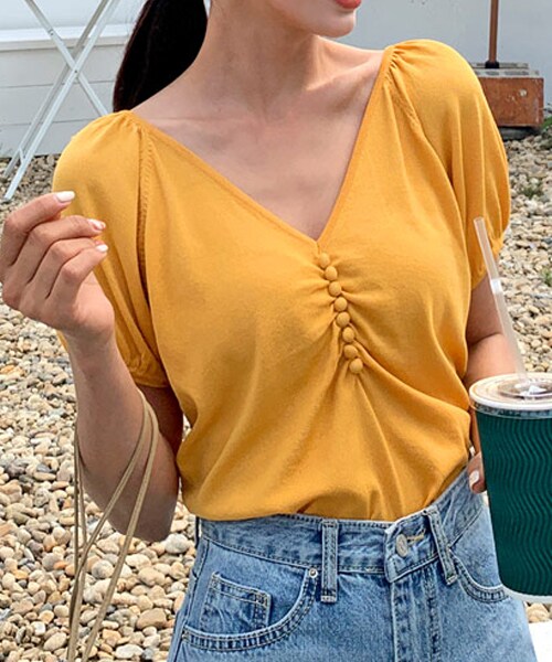 フロントのくるみボタンが可愛らしいポイント! スカートにもデニムにもあわせやすい着回し力抜群の一枚です。 ※WEARに記載してある金額と、DHOLIC通販サイトに記載してある金額にシステム都合上、稀に誤差が生じます。正しい金額はDHOLIC通販サイトに記載された金額です。