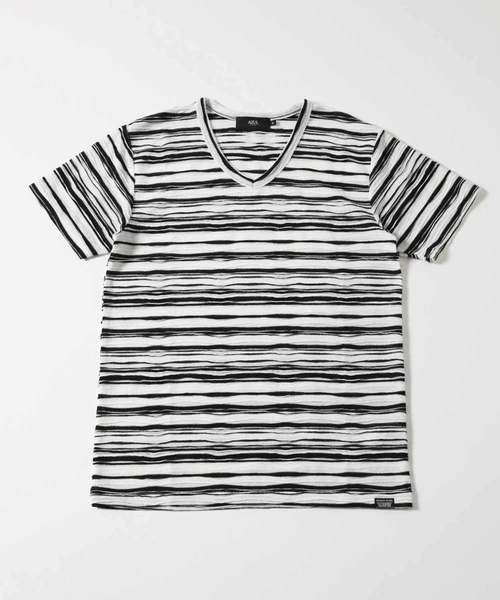 色使いやジャガード表現を強くすることで風合いのある表面感に仕上げたBORDER TACK Vネック T-SHIRT。柔らかな素材が快適な着心地を持ったアイテムです。季節を感じさせるボーダー柄がこれからのシーズンに活躍する重宝できる1枚です。■着用モデル身長185cm:着用サイズ L