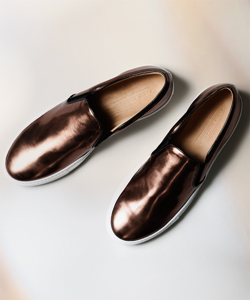 ◆FABIO RUSCONI◆ 『ブランド初となる待望のメンズラインが、nano・universe限定で登場!』 イタリアブランドらしい洗練されたデザインと履き心地を追求したシューズに定評があるFABIO RUSUCONIから、初となるメンズのラインナップを、nano・universe別注でのエクスクルーシブ展開がスタートです! インパクトのあるメタリックなカラーが魅力 ストリートで映えるメタリックなカラーは、コーディネートのアクセントにピッタリです。 スッキリとした、程よく細身のフォルムで、カジュアルにはもちろん、キレイめなスタイルにも合わせられるデザイン。 インソールもレザーを使用するなど、細部までこだわりが感じられる仕上がりです。 履けば納得の追求された機能性 厚めのラバーソールは、軽量ながらも弾力性があるので歩きやすく、快適な履き心地。 また、スリッポンタイプなので着脱がしやすいのもポイントです。 洗練された優れたデザインもさることながら、抜群の機能性も兼ね揃えた逸品を是非この機会にご堪能下さい。 -FABIO RUSCONI-(ファビオ ルスコーニ) 「FABIO RUSUCONI」はイタリア、トスカーナ州フィレンツェ在住のシューズデザイナー、FABIO RUSUCONIが様々なファクトリーとのコラボレーションの後に、1998年に立ち上げたブランド。 ファビオのクリエイティビティと世界中のマーケットのニーズを結びつけ、イタリアブランドらしい洗練されたデザインと履き心地を追求したシューズに定評があります。 ※サイズについて サイズ(cm)はあくまでも目安となっております。 足の形、サイズは個々に違います。 足幅が広い、甲高の場合は若干大きめサイズをお選びください。 店舗にて在庫をお探しの際は、下記の①、または②の品番を ナノ・ユニバース カスタマーサービス:0120-70-5088 (対応時間 11:00~18:00※平日・休日・祝祭日問わず) へお申し付けください。 ①9999141270122②673-292S-2
