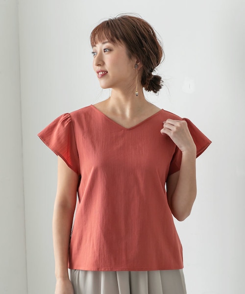 くすみ感をほんのりと加えたシーズンムードたっぷりなダークオレンジ。開きすぎていないVネックと程よいフリルがポイントのスリーブは、お仕事でも安心な上品さをキープしました。ボトム次第でONもOFFも活躍します。裏地:なし 伸縮性:あり 着用モデル:中西麻里衣さん H162cm (Fサイズ着用) カラー :ダークオレンジ 素材 :レーヨン56% ポリエステル39% ナイロン5%