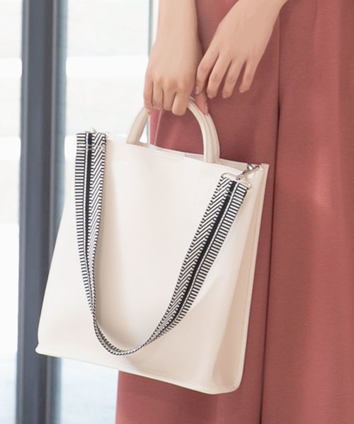 エスニック柄ベルトトートバッグの登場。エスニックベルトは取り外し可能なので、おでかけからオフィスまでON/OFFどちらのスタイリングにも合わせやすいのが嬉しいポイント。ショルダーバッグとしてもハンドバッグとしても使えて、ベルトの付け替えも可能◎アイキャッチなスクエア型がシックな印象を引き立てます。カジュアル~きれいめまでコーデを選ばず使える大人のシンプルバッグです。【素材・サイズ感】雨や汚れに強い合皮を使用しているのでデイリーユースにピッタリ。A4サイズが収納できマチもあるので、荷物の多い日にもおすすめです。巾着と内ポケットで小物の収納も◎ 内側ポケット:1