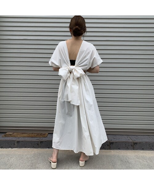 《バックオープンリボンワンピース》 前から見るとシンプルなデザインですが バックの大きなリボンとヘルシーに背中を 肌見せしてくれるカットデザインがポイントの コットンワンピースです。 着用モデル 156cm ◼︎カラー ホワイト ※商品のお色味はご覧になっているモニターによって多少の違いがございます。ご了承下さいませ。 ◼︎サイズ FREE SIZE 総丈119cm 肩幅46cm ウエスト切り替え部分 48cm- 104cm (総ゴム) ※独自の平置き採寸のため採寸に誤差が生じる場合がございますので、大体の目安としてご覧頂けますようお願い致します。 ◼︎素材 コットン、ポリエステル