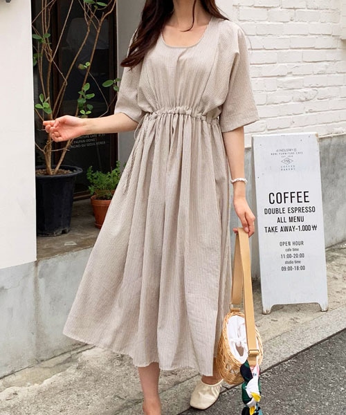 プチプラ¥2,948!細かいストライプパターンのフレアワンピース。 爽やかなムードが夏らしい一枚♪ ウエストを紐で絞って調節する女性らしいお作りです。 ※WEARに記載してある金額と、DHOLIC通販サイトに記載してある金額にシステム都合上、稀に誤差が生じます。正しい金額はDHOLIC通販サイトに記載された金額です。
